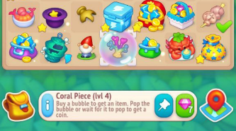 Untuk mendapatkan item di dalamnya, anda boleh membeli gelembung itu dengan berlian. Jika anda mengetik ikon pin atau menunggu sehingga gelembung itu pecah, item di dalam gelembung akan hilang dan syiling akan tertinggal di tempatnya.